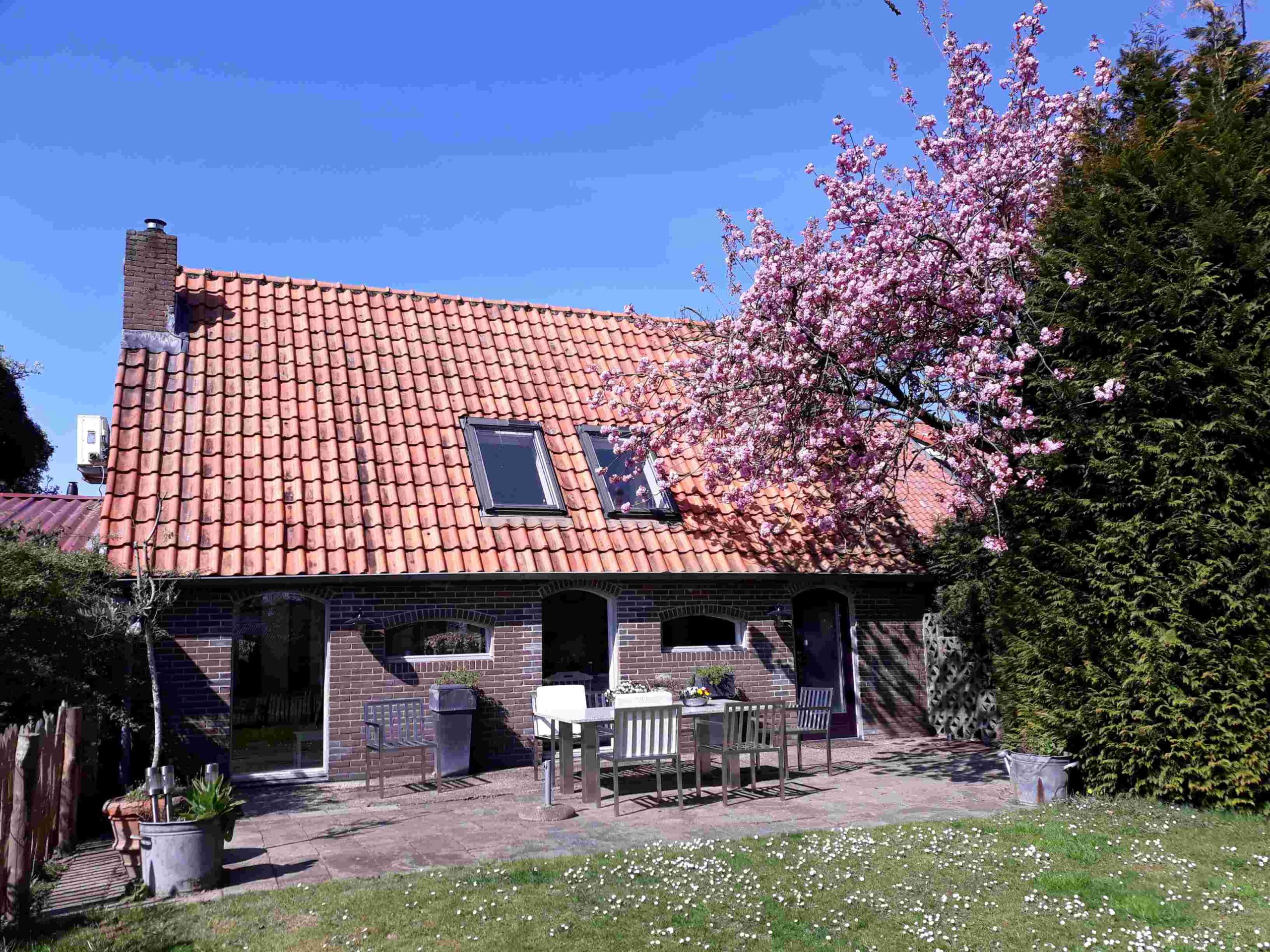 - Our home with blossom tree