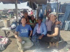 With a hot wind blowing through the open window, we sped for hours through the vast, dusty countryside, passing villages of mud houses with grass roofs and the occasional baobab tree. And finally, at 7 p.m., we were met at the busy bus station in Lusaka by Simon, the Zambian pastor.