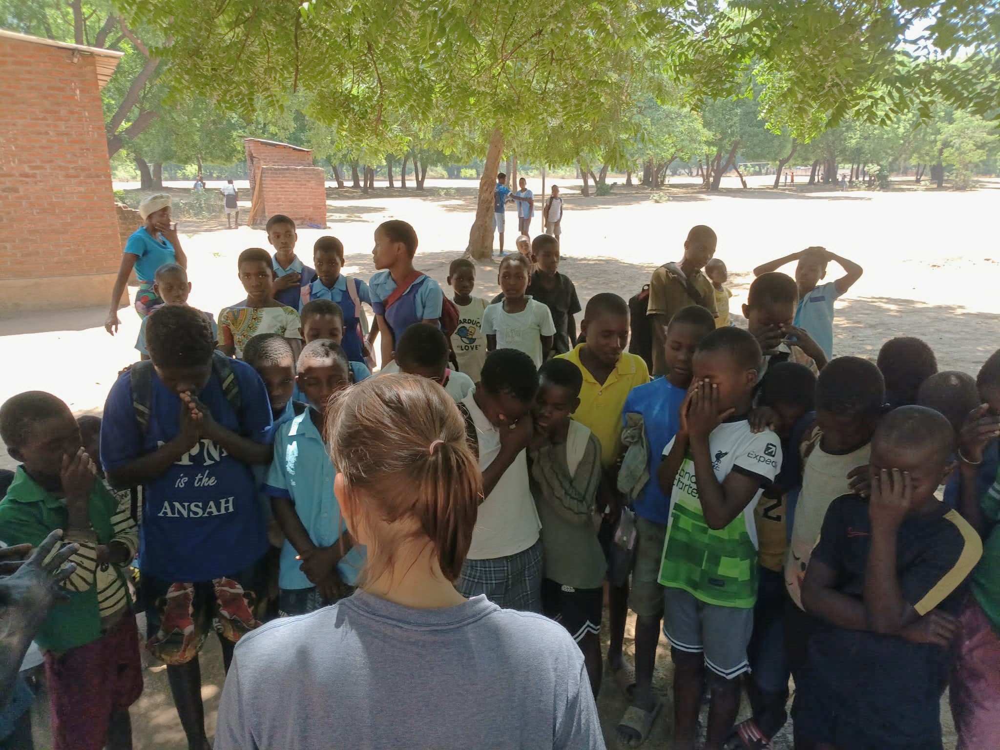 Amanda was explaining the ‘3 circles’ step by step to the eager students under the tree when the nearby school finished. Of course, as an azungu, you are a very special sight in a village far from the big city. For many, it is the first time they see a white person.