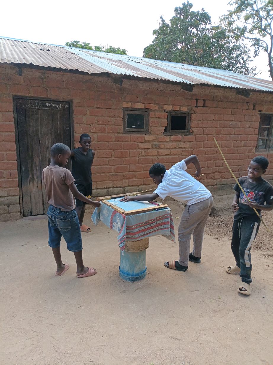 This time, we drew the three circles with a nail in the floor of the church. No fancy vinyl or carpet, just trampled earth. The exercises caused a lot of laughter.