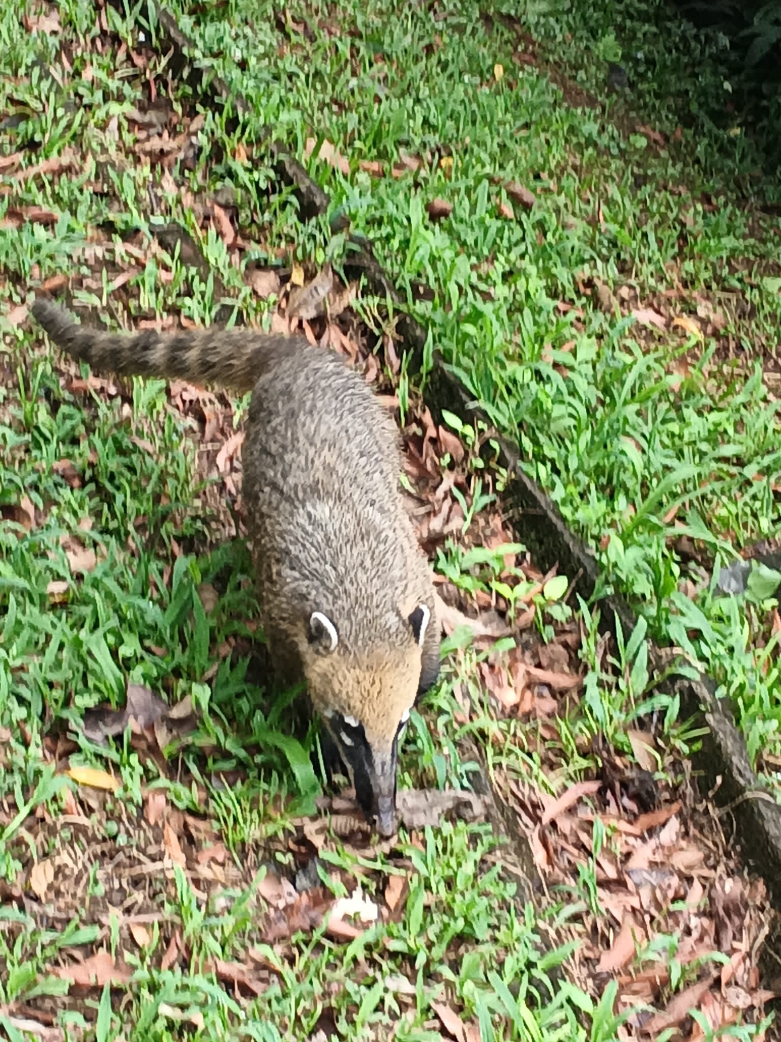 During the walk, a number of curious coatis also walked along the path. These are raccoon-like animals with long snouts and tails. They showed themselves briefly before disappearing back into the vegetation.