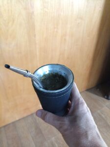 A common sight in Paraguay is people walking around with a large thermos under their arm, attached to a small cup holder. They take it everywhere with them. You see workers, families, young couples, and in the evenings, people sitting on chairs in front of their homes, enjoying this refreshing drink together.